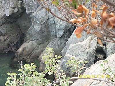 용월사 바로 우측에 용굴이 있어요. 바닷물이 빠지니 굴도 보이는데 용이 머리를 살짝 보여주네요.