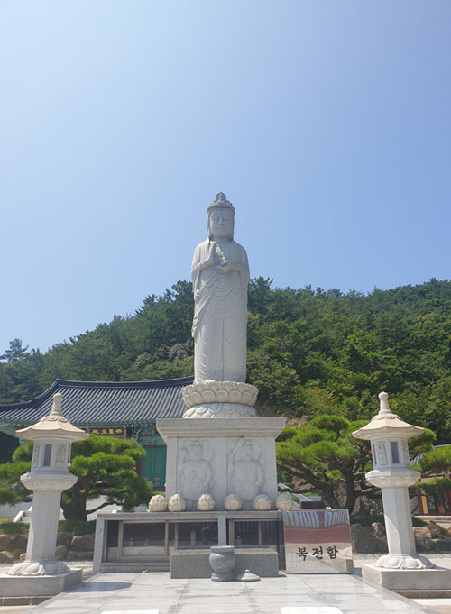 생명을 걸고 거친 바닷일을 생업으로 삼고 사는 이들의 안전을 지키며 용월사 해수관음상은 법당을 뒤로 하고 용월사 앞바다를 바라보고 있습니다.